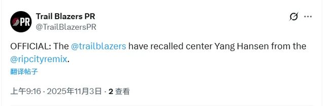 北京时间11月3日,开拓者官方宣布召回杨瀚森,根据此前报道,他将随队参加明日对湖人的比赛。队记Mike Richman在播客上谈到了杨瀚森的话题。他指出开拓者下放瀚森到发展联盟,有可能只是训练而不参加比赛,随后他分析了其中的原因。以下是Richman播客关于瀚森的内容——